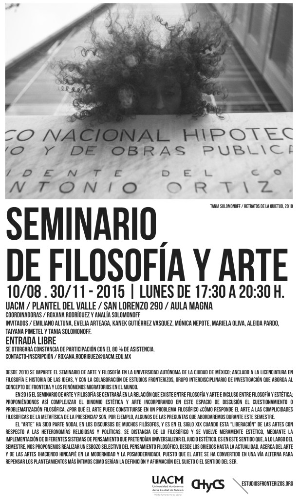 En esta ocasión y como parte de las actividades del grupo de investigación, decidimos hacer un seminario en conjunto con colegas de otros ámbitos para hablar de esas otras fronteras: la del arte, la estética, las expresiones creativas.