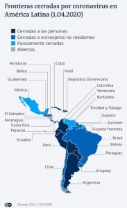 Como hasta ahora lo hemos apreciado, ha existido un cierre de fronteras en prácticamente todo el mundo para la movilidad humana, no así para el intercambio de productos necesarios para combatir la pandemia (productos médicos, alimentos, ventiladores especialmente, etc.) y salvo en contados casos se ha permitido el viaje de las personas, ubico tres situaciones puntuales: 1) personal de salud que viaje a otros países a apoyar (aquí es necesario reconocer el caso de Cuba y de China); 2) los llamados vuelos humanitarios que se encargan de regresar a sus países de origen a las personas que estaban en otros países; 3) vuelos para deportar personas de Estados Unidos y México.