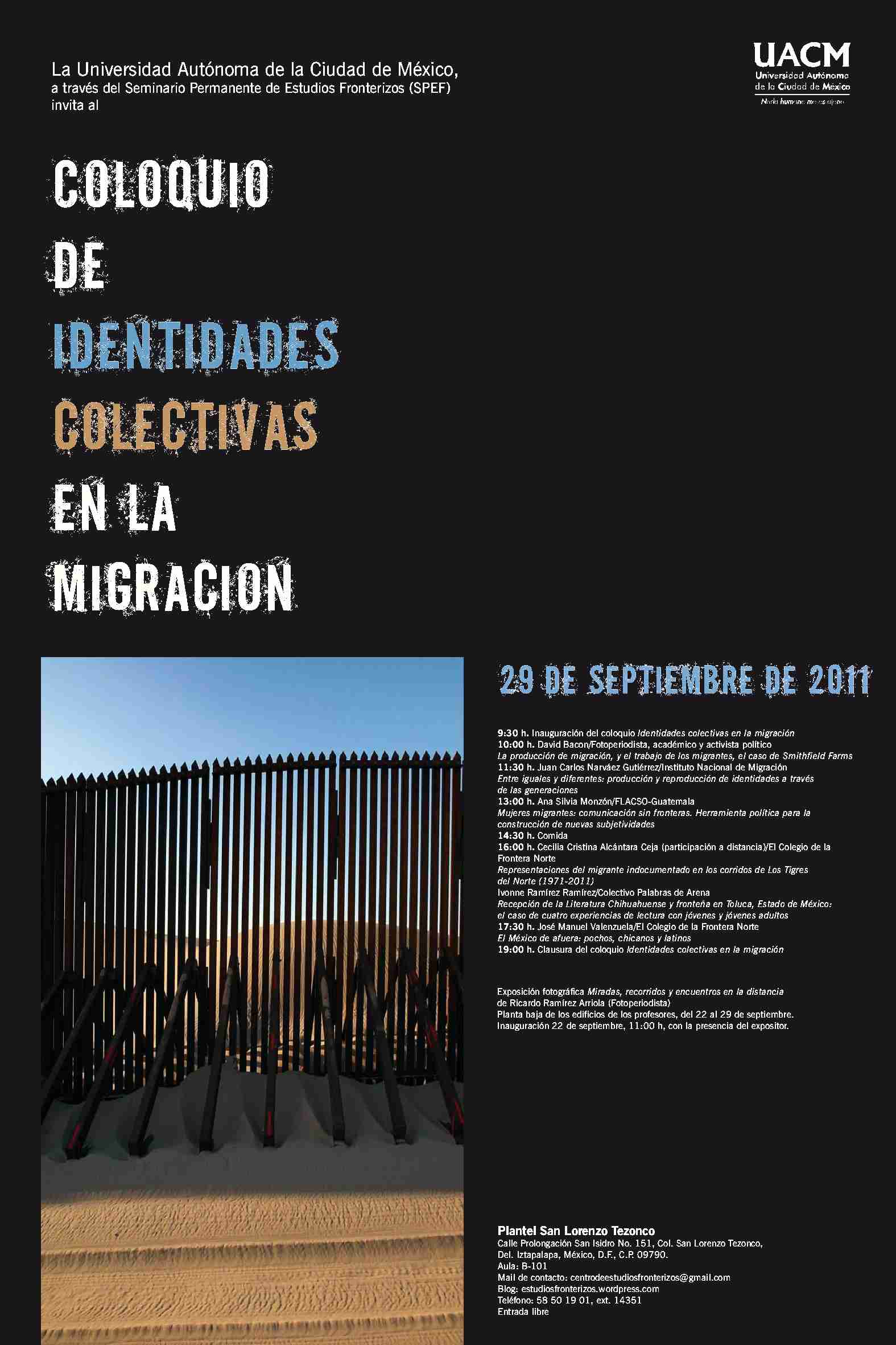 2011. (SPEF) Coloquio de Identidades Colectivas en la Migración. Co-coordinado por Roxana Rodríguez Ortiz y Amarela Varela.