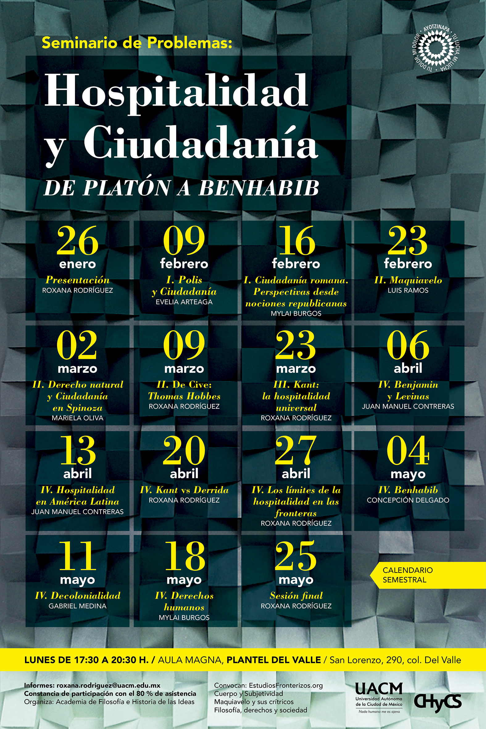 2015 Seminario de problemas Hospitalidad y ciudadanía. De Platón a Benhabib. Coordinado por Roxana Rodríguez Ortiz.