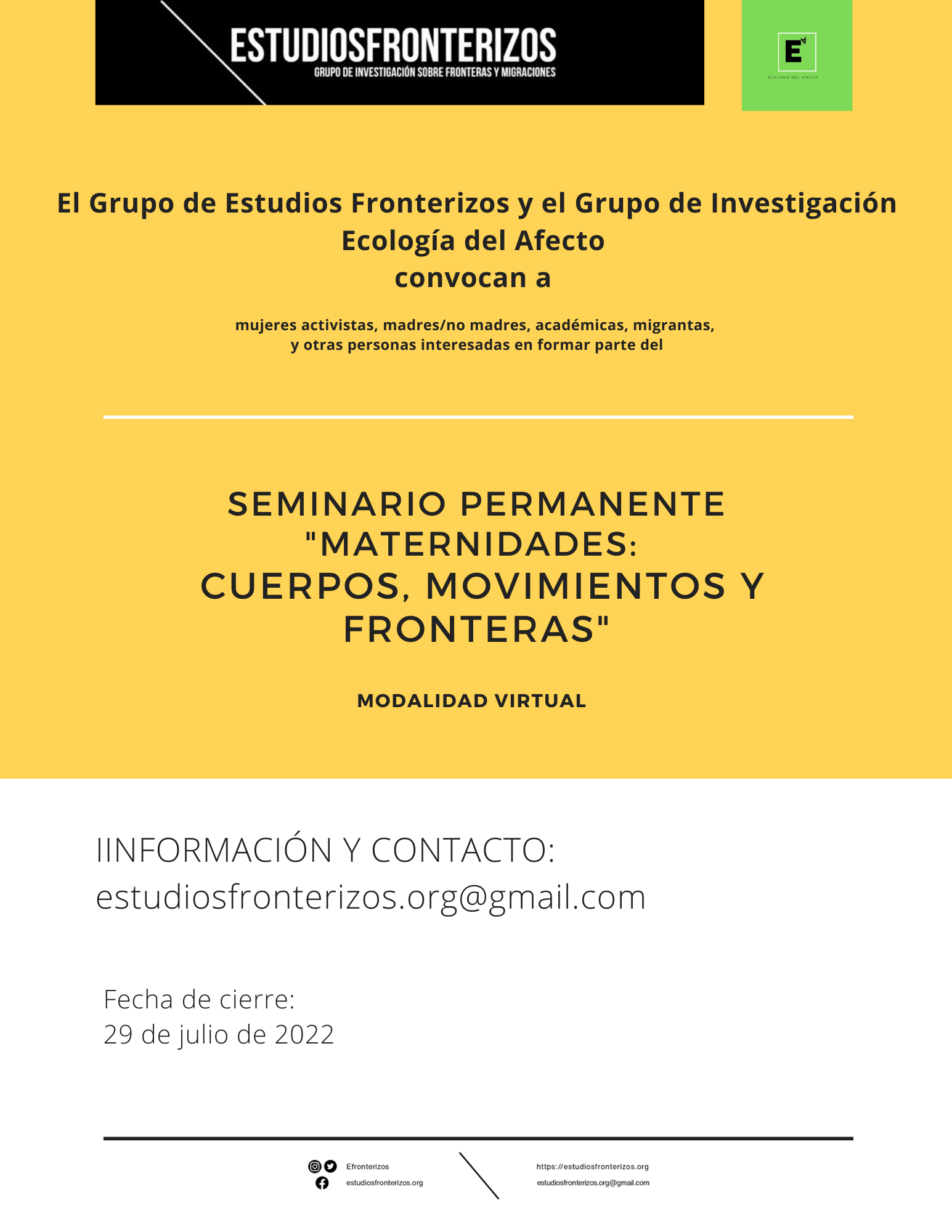 2022-2023. (SPEF) Maternidades, cuerpos, movimientos y fronteras. Co-coordinado por Lucía Ortiz y Gabriela Pinillos.